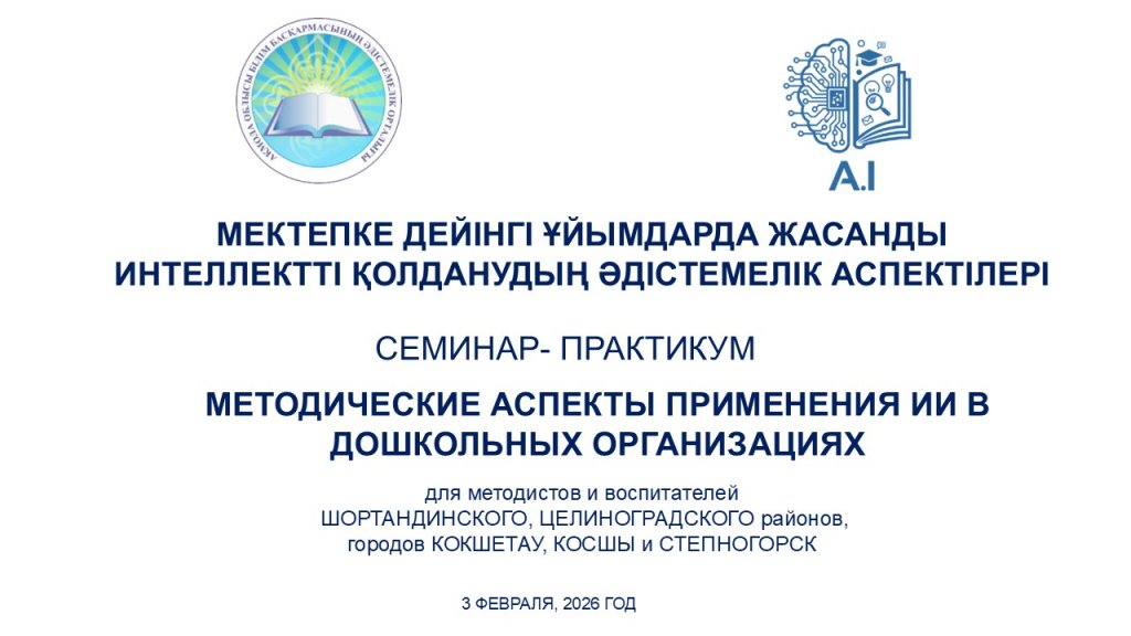 «Ақмола облысы білім басқармасының әдістемелік орталығы» КММ жоспарына сәйкес 2026 жылғы 28–30 қаңтар аралығында бастауыш сынып мұғалімдеріне арналған «Білім берудегі AI: педагогтердің алғашқы қадамы» атты облыстық онлайн семинар-практикум өткізілді....