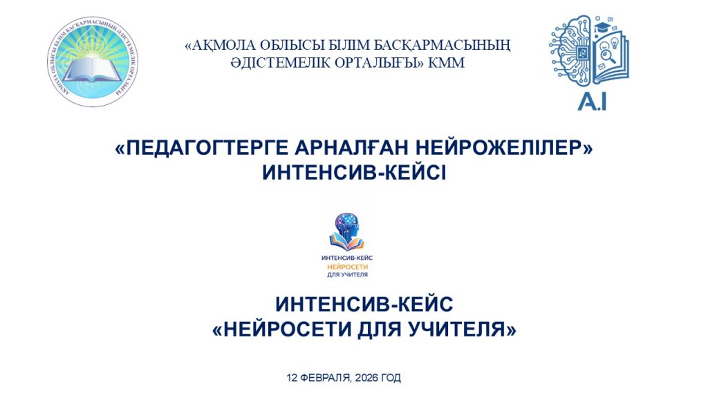 «Ақмола облысы білім басқармасы әдістемелік орталығы» КММ жұмысы аясында білім беру үдерісінде жасанды интеллект технологияларын қолдану саласындағы пән мұғалімдерінің кәсіби құзыреттіліктерін жетілдіруге бағытталған «Мұғалімге арналған нейрожелілер»...