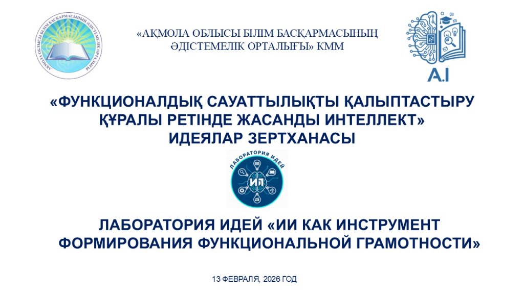 «ФУНКЦИОНАЛДЫҚ САУАТТЫЛЫҚТЫ ҚАЛЫПТАСТЫРУ ҚҰРАЛЫ РЕТІНДЕ ЖАСАНДЫ ИНТЕЛЛЕКТ» ИДЕЯЛАР ЗЕРТХАНАСЫ